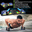 Different color-coded push up board targets specifics muscles worked (Blue-chest, Red-shoulders, Yellow-back, and Green-triceps)